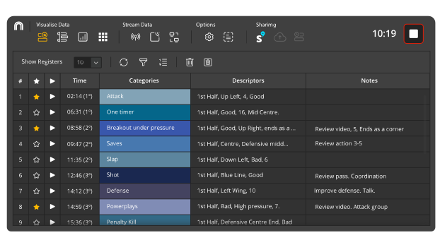 The main menu can be customised, so that your most frequently performed tasks are readily accessible. You can create a Timeline profile with a personalised toolbar, which can be saved and loaded whenever required. Some of Nacsport’s popular tools are also easier to access and available throughout the video analysis process.
